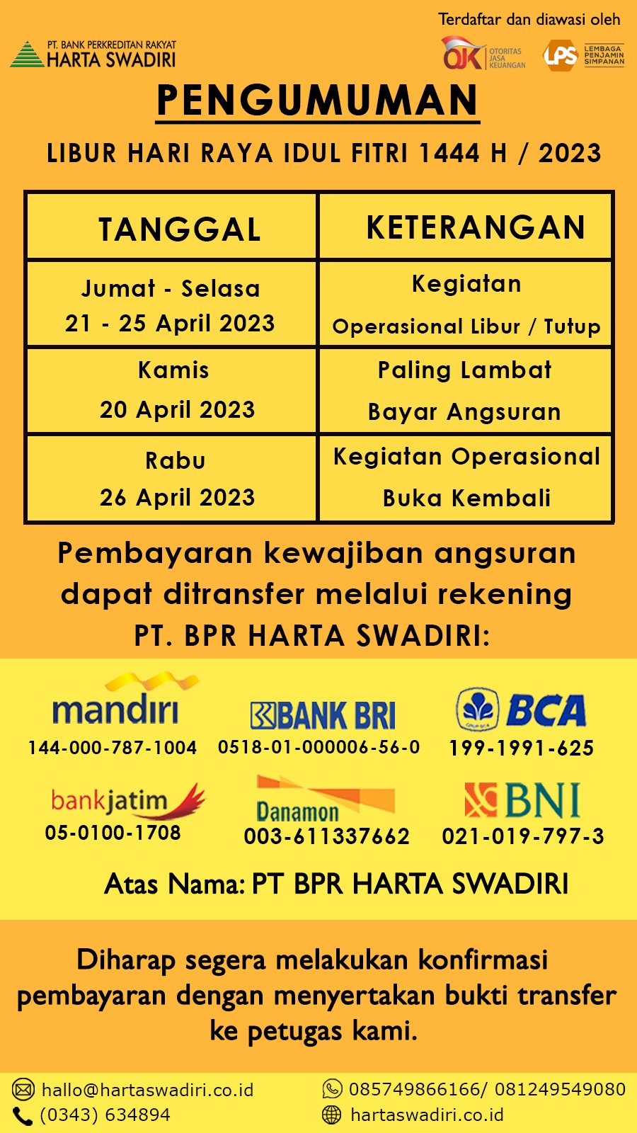 Pengumuman Libur Hari Raya Idul fitri 1444 H/2023